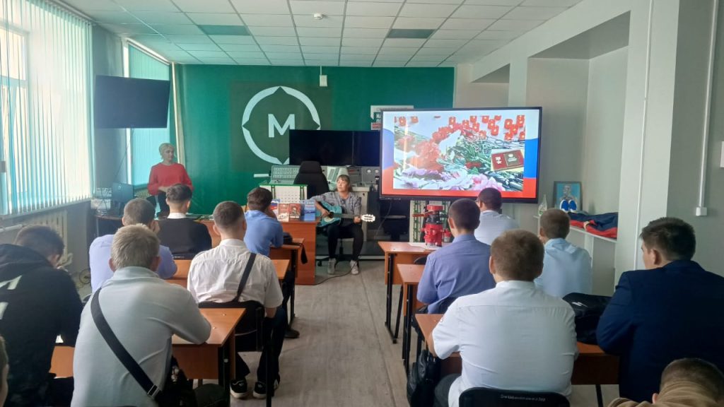 На уроке мужества были рассказаны истории забайкальских героев – Евгения Эпова, Игоря Молдованова, Андрея Днепровского, Антона Марченко, Виктора Тюрикова, Евгения Груздева, Егора Секержитского и многих других наших ребят, получивших звание Героя России посмертно.